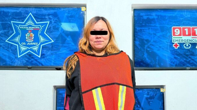 Ciudad Juárez.- Elementos de la Secretaría de Seguridad Pública Municipal, adscritos a la Estación de Policía del Distrito Universidad, realizaron la detención de Eliza G. C., por su presunta responsabilidad en la comisión del delito de daños a casa comercial.