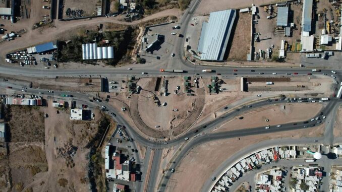 Chihuahua. – El Gobierno Municipal, por conducto de la Dirección de Obras Públicas, mantiene los trabajos de construcción del Paso Superior en el cruce de la carretera Chihuahua–Aldama y la avenida Fuerza Aérea, obra que actualmente registra un avance global del 14%.