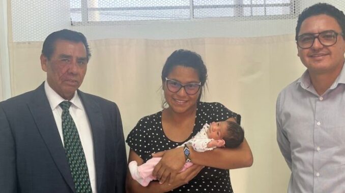 La mujer fue intervenida en un hospital de la ciudad y luego de regresar a este espacio, el Presidente Municipal, Martín Chaparro Payán, acudió a visitarla y a conocer a la nueva integrante de la familia.