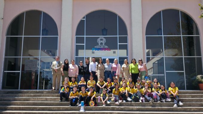 Un grupo de alumnos del segundo grado de la escuela primaria Gustavo Díaz Ordaz tuvo la oportunidad de recorrer las instalaciones de la Presidencia Municipal, en una actividad guiada por la presidenta del DIF Parral, Nora Carrillo de Calderón, con el objetivo de acercar a los menores al trabajo institucional y fortalecer su interés por los temas cívicos y de servicio público.