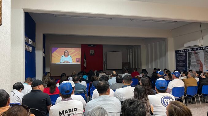Hidalgo del Parral – Representantes del Partido Acción Nacional (PAN), el Partido Revolucionario Institucional (PRI) y el Partido de la Revolución Democrática (PRD) se reunieron en las instalaciones del Comité Directivo Municipal de PAN en Parral para visualizar juntos el Primer Debate Presidencial, transmitido en vivo por el INE, en un acto de apoyo unificado a Xóchitl Gálvez, próxima presidenta de México.