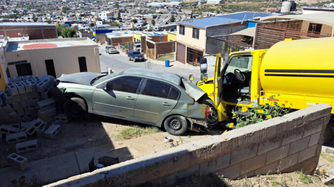 En tremendo lío se metió Luis R. R. tras dejar estacionada una pipa en una pronunciada pendiente, la cual se puso sola en movimiento y recorrió más de 60 metros hasta impactar con tres objetos fijos.