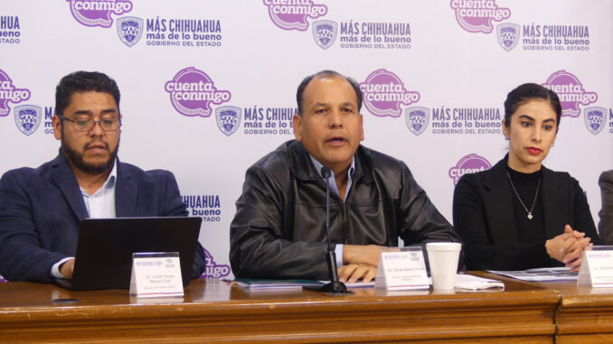 Durante la conferencia de prensa el titular del Conalep estuvo acompañado por Víctor Hugo Reyes Díaz, director del plantel Juárez I; Gustavo Alonso Gasca Ramírez, director del plantel Chihuahua I; Rafael Díaz Carrillo, director estatal de Formación Académica; Elizabeth Azaeta, subjefa técnica de Formación Académica; y Alan Vázquez Martínez, director de Capacitación y Planeación.