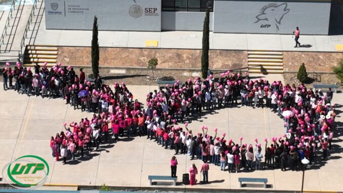 Estudiantes, docentes y personal general de la Universidad Tecnológica de Parral (UTP) realizaron la Caminata Rosa dentro de las instalaciones, como un acto simbólico para conmemorar el Día Internacional de la Lucha contra el Cáncer de Mama, que se conmemora este 19 de octubre.