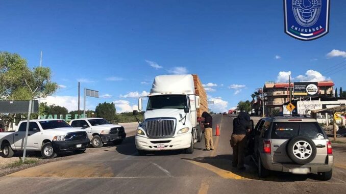 Policías Investigadores colocan puntos de control a la altura del kilómetro 56 de la carretera Parral- Jiménez, así como en la carretera vía corta a Chihuahua, a la altura del municipio de Valle de Zaragoza.