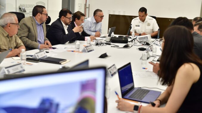 A través de la Mesa de Seguridad, se brinda a la población vigilancia permanente por tierra y aire, con el despliegue coordinado de más de 1,800 elementos distribuidos en todo el territorio estatal.