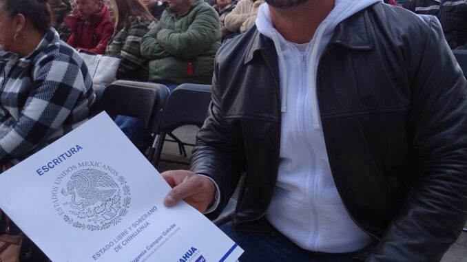 La Secretaría de Desarrollo Urbano y Ecología (SDUE), entregó en la ciudad de Parral 152 escrituras de propiedad, con lo cual se da certeza jurídica a igual número de familias, sobre la posesión legal de su patrimonio.