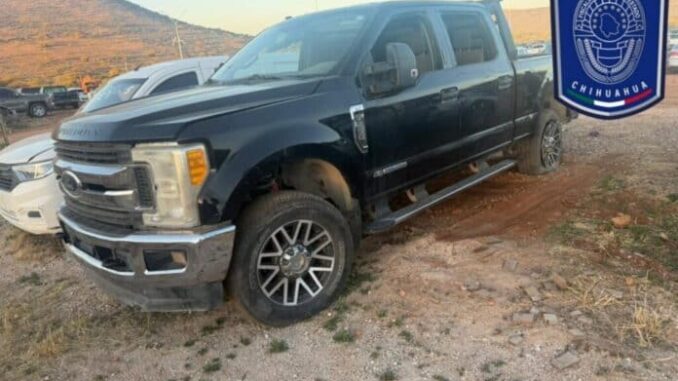 Elementos de la Agencia Estatal de Investigación (AEI) adscritos a la Fiscalía de Distrito Zona Sur, recuperaron una camioneta Ford, línea F250, modelo 2017, de color negro, reportada como robada el 23 de junio de 2024, en la carretera Chihuahua- Satevó.