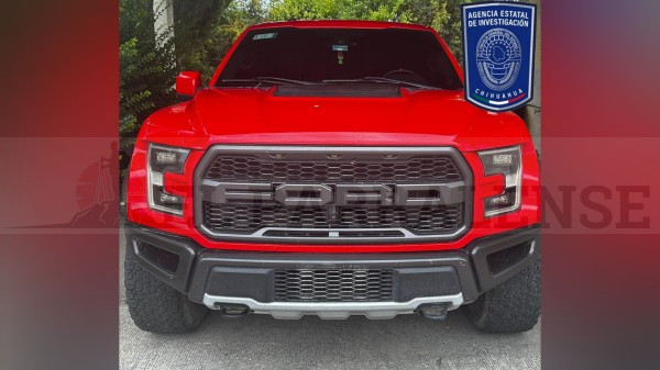 Elementos de la Agencia Estatal de investigación (AEI) de la Fiscalía de Distrito Zona Sur, localizaron y recuperaron una camioneta tipo pick up marca Ford, línea F150 Raptor, modelo 2018, de color rojo, que contaba con reporte de robo.