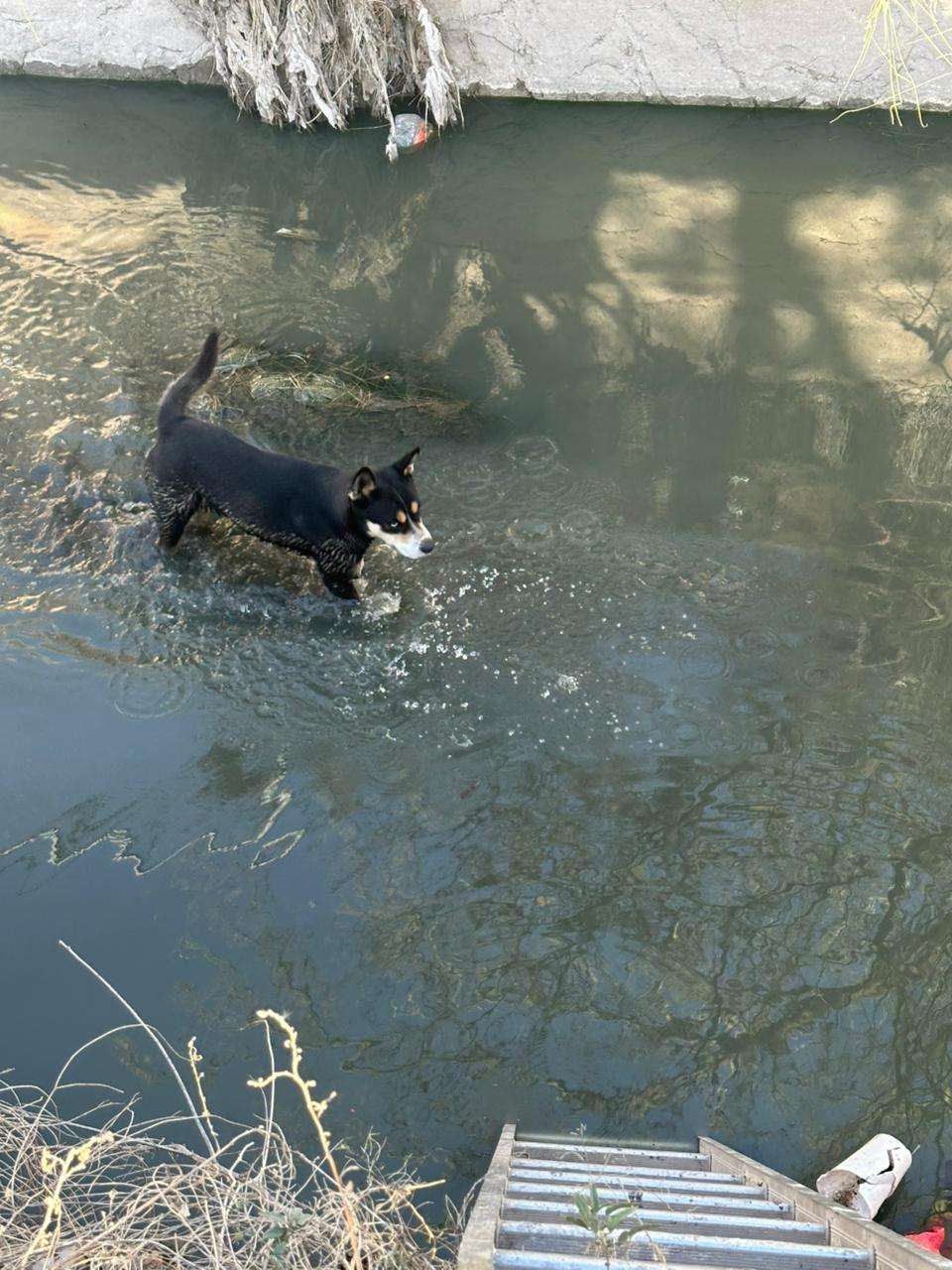 De manera inmediata, los oficiales acudieron al lugar señalado, en donde se entrevistaron con una ciudadana quien manifestó que al pasar por el canal ubicado en dicho cruce observó a un perro de color negro en el interior, intentando salir por sus propios medios.