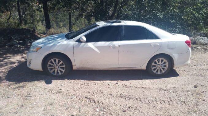 Elementos de la Agencia Estatal de Investigación (AEI) recuperaron un automóvil de la marca Toyota, línea Camry, modelo 2012, de color blanco, poco después de que fue reportado en el municipio de Guachochi.