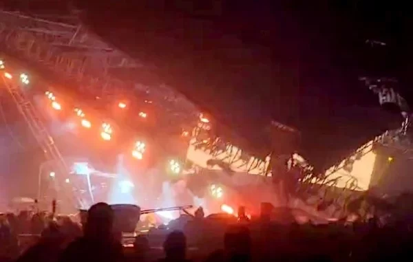 Al momento de que comenzó a sacudirse por el viento la estructura localizada sobre el escenario, los candidatos alcanzaron a salir corriendo, mientras las piezas metálicas que sostenían las luces, pantalla y el techo se precipitaron hacia el entarimado donde había decenas de personas.