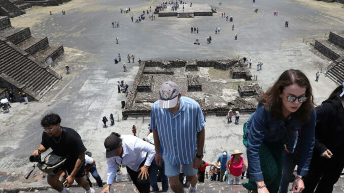Turistas realizan recorridos este miércoles en la Zona Arqueológica de Teotihuacán, en el Estado de México (México). EFE/Mario Guzmán