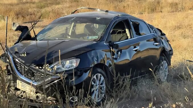 El accidente ocurrió en el tramo conocido como Los Linderos, a pocos kilómetros de El Granillo, donde un vehículo Nissan Sentra salió abruptamente del camino y terminó volcado entre la maleza. La unidad quedó con daños severos, lo que da cuenta de la fuerza del impacto.