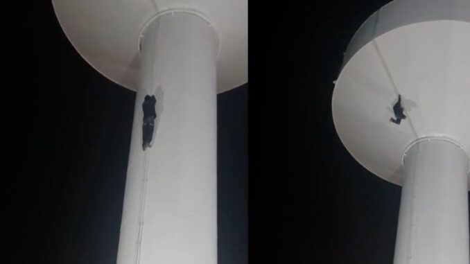(VIDEO) Captan el momento en que un joven trepa a un tanque elevado en Ojinaga y cae