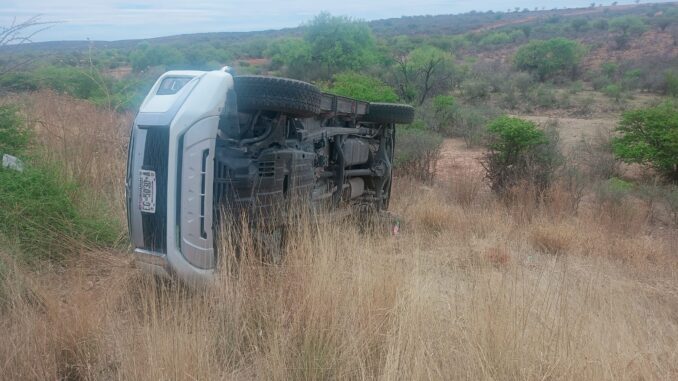 Un accidente tipo salida de camino con volcadura se registró este jueves al mediodía sobre la carretera Parral–Jiménez, a la altura del kilómetro 6+200, sin que se reportaran personas lesionadas, únicamente daños materiales.