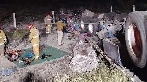 Dicha persona conducía un tractocamión marca Kenworth color rosa, acoplado a un remolque tipo plataforma, el cual salió de la cinta asfáltica y volcó, lo que derivó en los citados hechos.