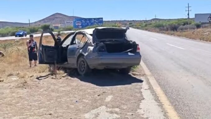 Un fuerte accidente se registró la tarde de este sábado sobre la carretera Parral–Jiménez, a la altura del CERESO, donde un automóvil terminó completamente destruido tras una volcadura.