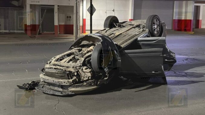 Chihuahua.- Una mujer lesionada y la movilización de cuerpos de emergencia fue el saldo de una volcadura registrada la madrugada de este domingo en el Periférico de la Juventud, a la altura de la calle Universidad de Guadalajara, en la colonia Universidad, luego de que un automóvil de transporte privado por plataforma sufriera un aparatoso accidente.